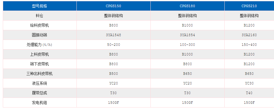 履帶式移動(dòng)制砂機(jī)技術(shù)參數(shù)】: